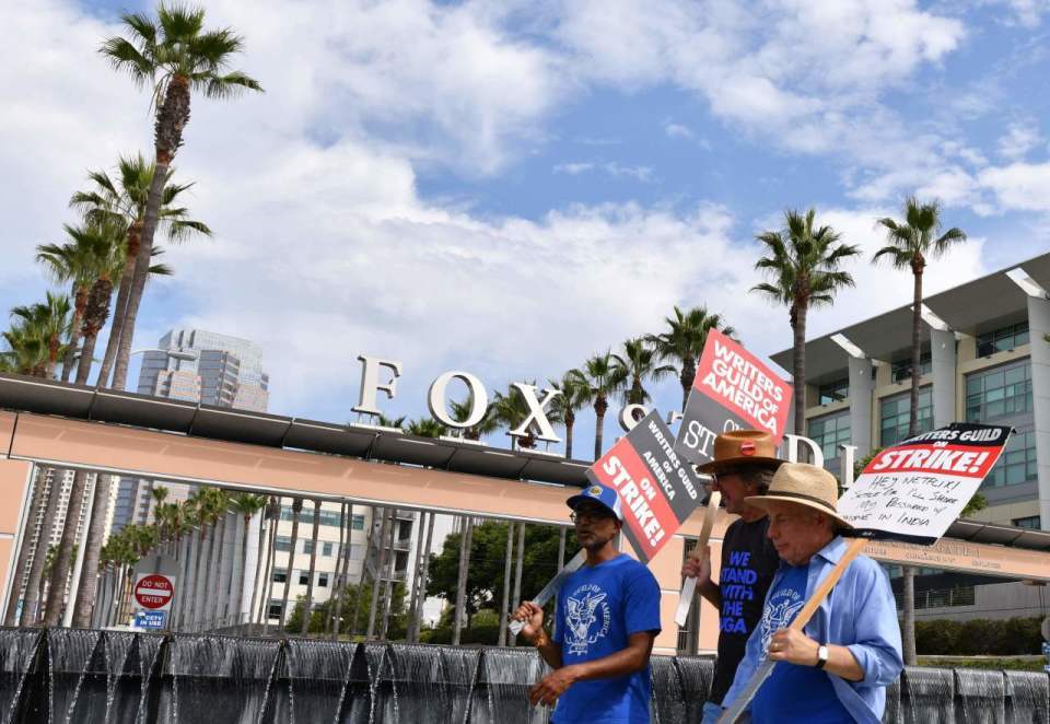 2023年,美国编剧协会发起罢工,电影和电视制作陷入停顿。(视觉中国 图)