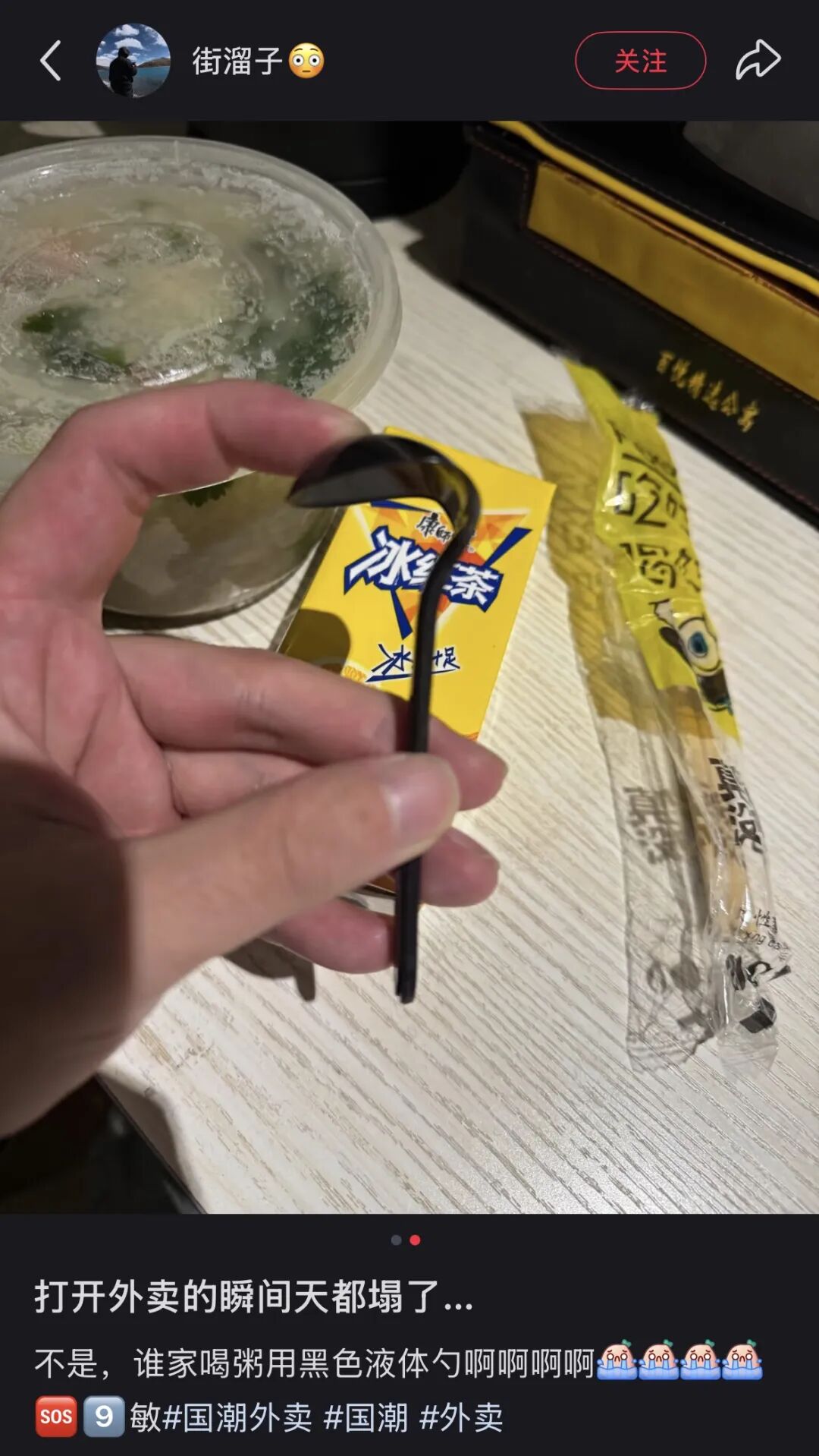 当食物被拆解成可复制、可组合、可替换的工业组件,我们看到了全国统一的外卖三件套:国潮袋、塑料勺、淀粉肠。这是算法的胜利,可惜要由人类来买单。