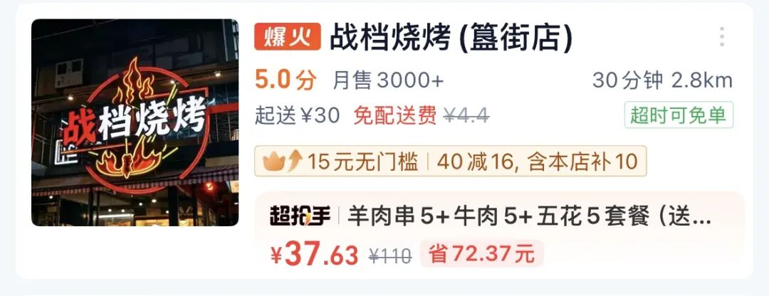 这样的烤串图片大家想必都很熟吧,像是专业烧烤店的出品,其实是电商平台上三块钱就能买到好几百张的网图,全国各地的烧烤外卖都长这样。
