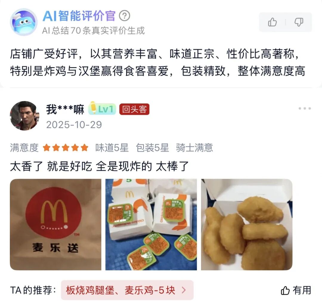 大家应该也都发现了,最近在看外卖评价时,经常可以看到 AI 总结好的评价内容,这些总结看起来十分贴心,像是把几百条评价浓缩成了一段精华,替你节省反复翻评论的时间。