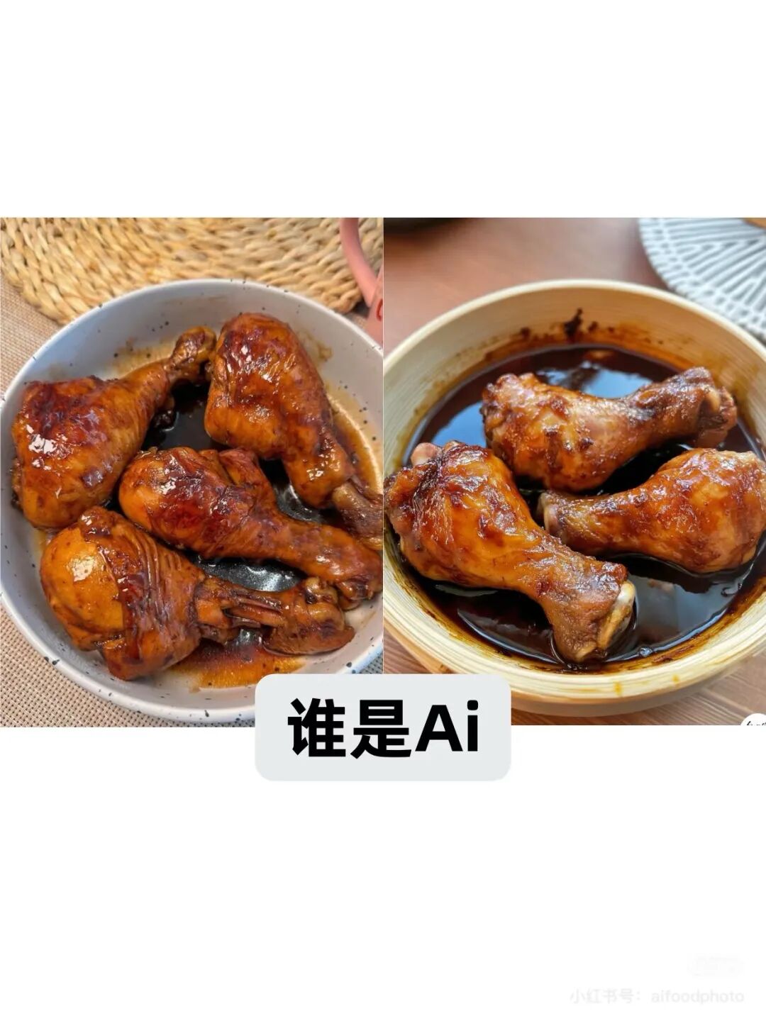能看出下面哪一盘是 AI 鸡腿吗?很难吧,所以想要通过图片挑出好吃的外卖注定是徒劳的,因为它们很可能本身就不存在。