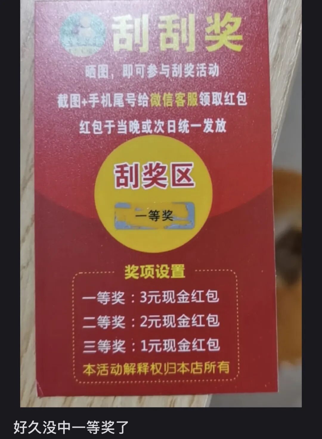 国潮外卖里往往附赠一张好评返现卡,深谙赌徒心理的商家将它设计成刮刮乐的形式,刮开涂层——好评即返3元!