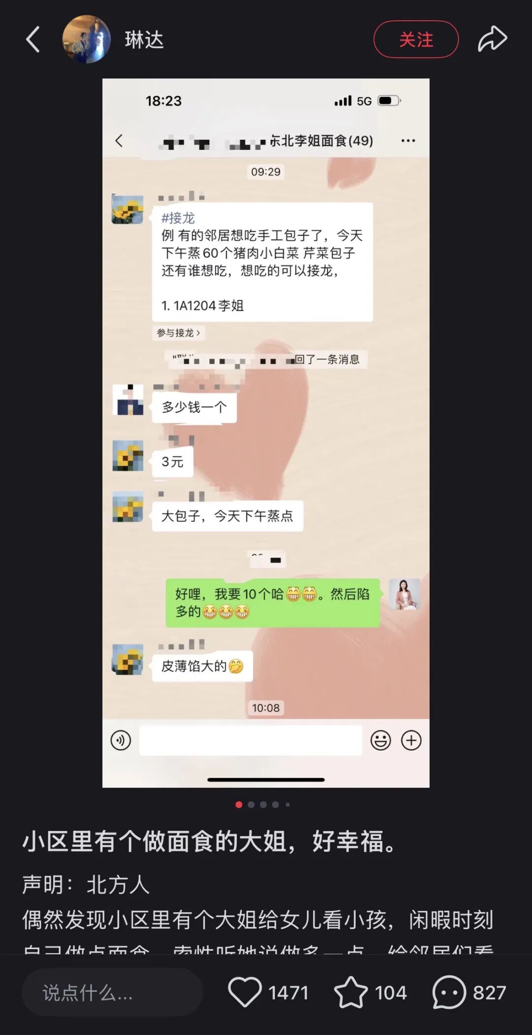 没有算法推荐,没有精修图片,当然也没有健康证和营业执照,但是人们反而觉得安心——邻居做的,总不至于比外卖小作坊还脏吧!