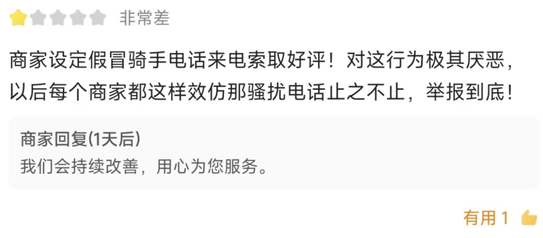 这谁能拒绝啊!骑手每天风吹日晒雨淋送餐,给个好评就他就会有奖励?速速拿起手机怒写一顿。其实这是商家用 AI 冒充骑手打来的电话,商家批量购买、自动拨打,精准收割人们朴素的同情心。
