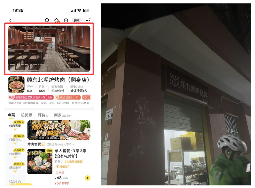 一日两餐顿顿外卖的诸位一定见过这样的门头照:大气明亮的招牌,柔和的光线,门口大排长龙,十分热闹。