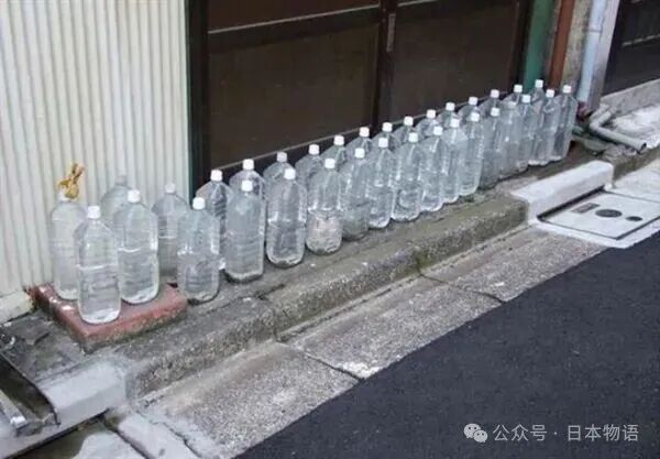 这种景象从东京到大阪,从乡间到都市,随处可见。那么问题来了:日本人为什么要在家门口放这些装水塑料瓶?