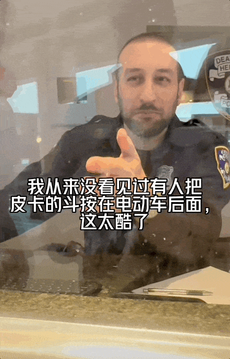 更夸张的是,公公根本等不及完全装好,后斗围栏还没上齐,就已经迫不及待开出去“兜风”。于是,一个带着浓厚东方气息的三蹦子,在美国街头成功完成首次炸街。