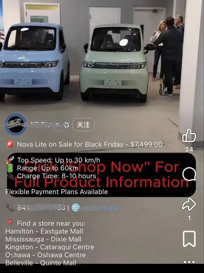 在多伦多一些商场和实体店里,这种三蹦子的日常标价,税前普遍在8000加元左右,黑五促销也要七千多。看到这个数字,不少华人第一反应不是心动,而是怀疑人生——“这不就是国内几千块人民币的东西吗?”