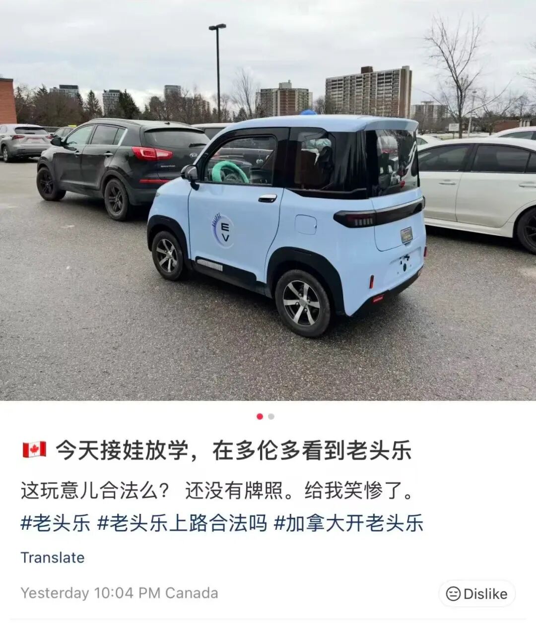 最近不光是温哥华狂风暴雨,多伦多天气状态也不太友好。雨夹雪轮着来,路面湿得像刚打过蜡,走路一不留神就能原地劈叉。就在大家一边骂天气一边小心翼翼挪步的时候,有网友突然在路边看见了一个极其不合时宜的身影——一辆电动三轮车,正顶着风雪往前冲。没错,就是那个在国内常年被调侃、被嫌弃、被年轻人自动忽略的“老头乐”。