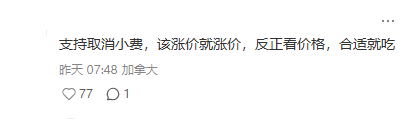 有人干脆喊 明码标价才实在:“支持取消小费,该涨价就涨价,反正看价格,合适就吃”