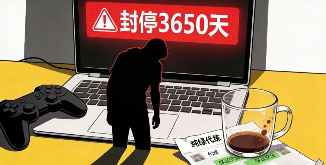 他一开始以为是误封,充满愤怒和不解,客服告知他账号被检测到使用第三方软件。他才回想起几天前,他曾把账号交给一个自称“专业跑刀”的代练,对方承诺“纯绿跑刀”,绝不使用外挂。但当他把封号截图发过去质问时,对方立刻把他拉黑。