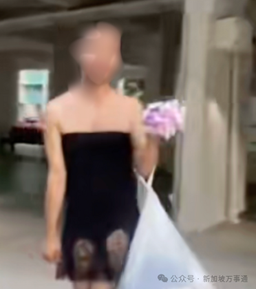 最近,义顺就出现了这样一位奇男子,他身穿黑色低胸蕾丝连衣裙,手里拎着一个大袋子,手上还拿着几包纸巾在义顺组屋楼下售卖。