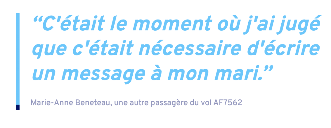 比如,Marie-Anne,她说:“那一刻,我承认我以为自己的生命即将走到尽头。感觉就像我当时觉得必须给丈夫写一封信,像留给家人一样。”