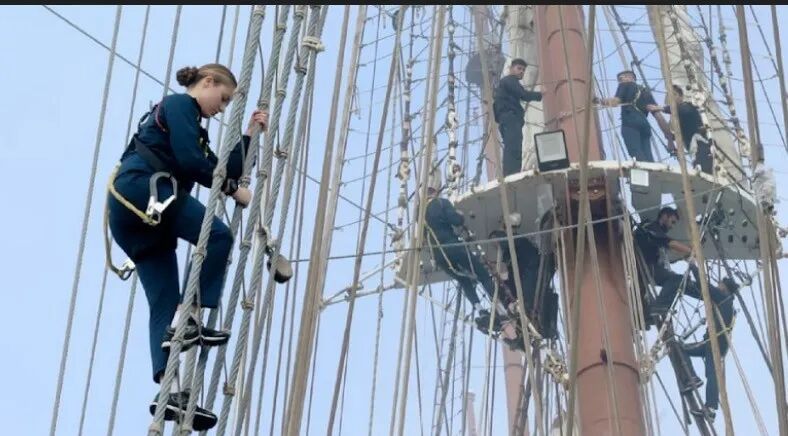 她和战友们穿越大西洋,访问拉美和纽约,经历了风暴、夜间守卫、攀爬桅杆、实弹演习。