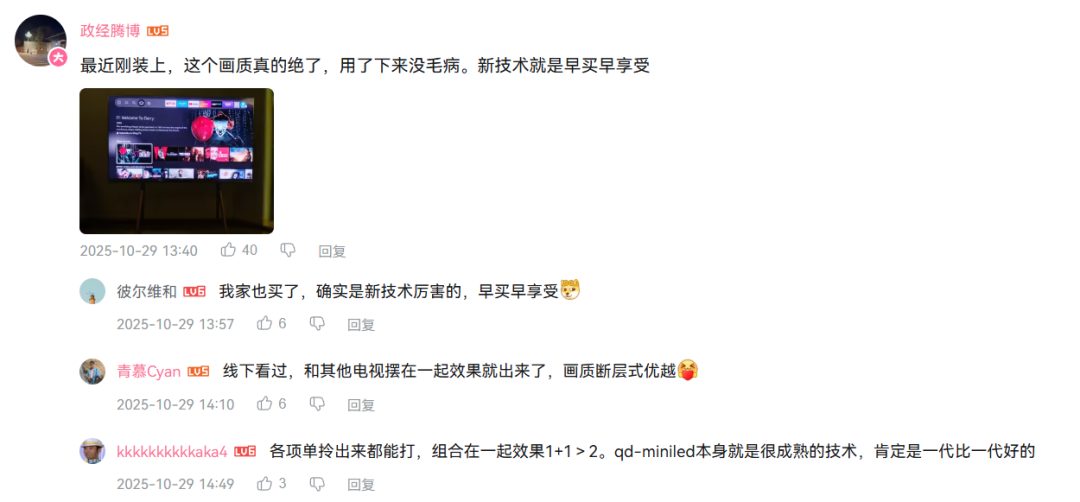 像 TCL 的 X11L 电视,单价近 6 万,仍然有不少人就为图个看得爽,满足自己的个性化需求,豪掷大几万块过过眼瘾。