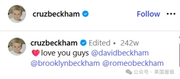 放在别人身上这可能不算啥大事儿,但对多年来一直把INS当成秀恩爱、秀家族团结工具的贝克汉姆一家来说,这种公开拉黑,已经是不得了的事态。