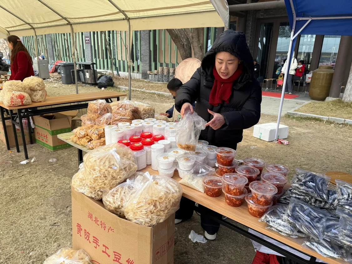 村民带来自家年货摆起市集。图/九派新闻 杜文添。