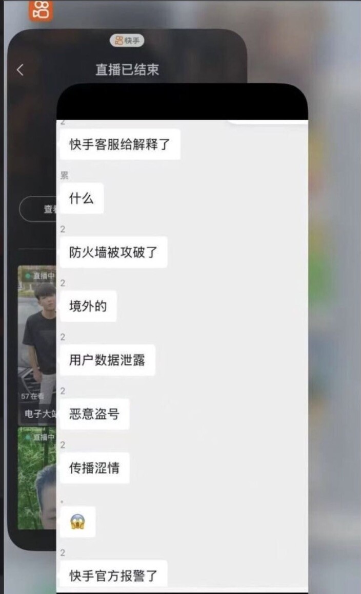 背景新闻:突遭黑灰产攻击,快手直播间“破防”