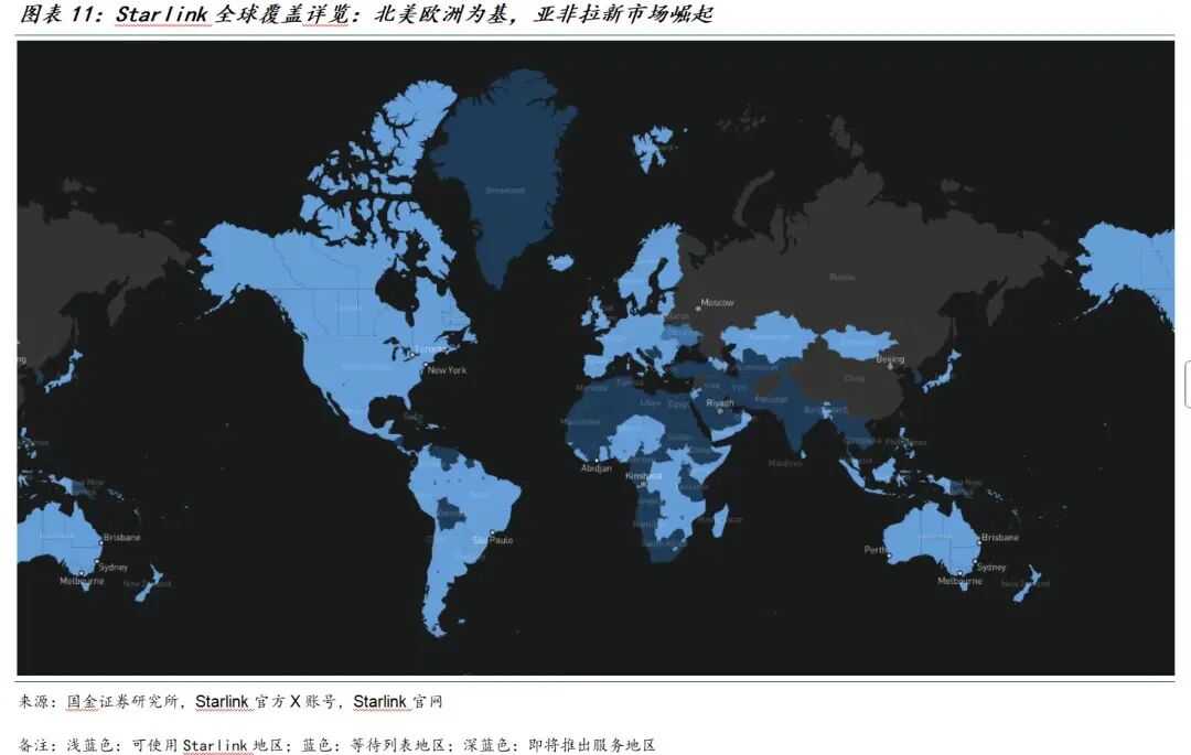 同时,星链也已经覆盖150多个国家和地区。