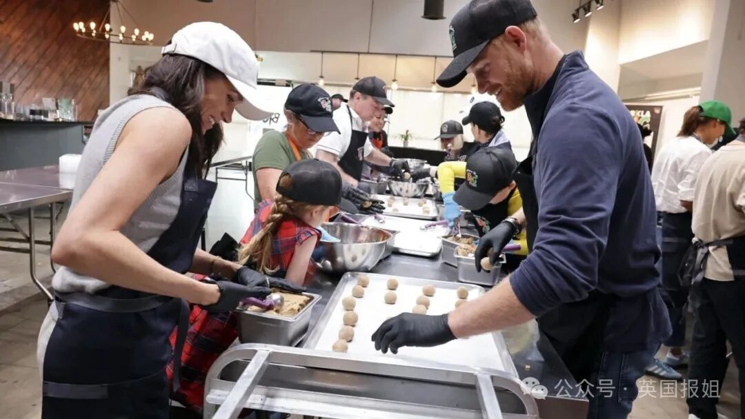 上个月感恩节的时候,哈里梅根带着俩娃去了一个名叫「洛杉矶:我们的大厨房」的慈善机构做饼干。
