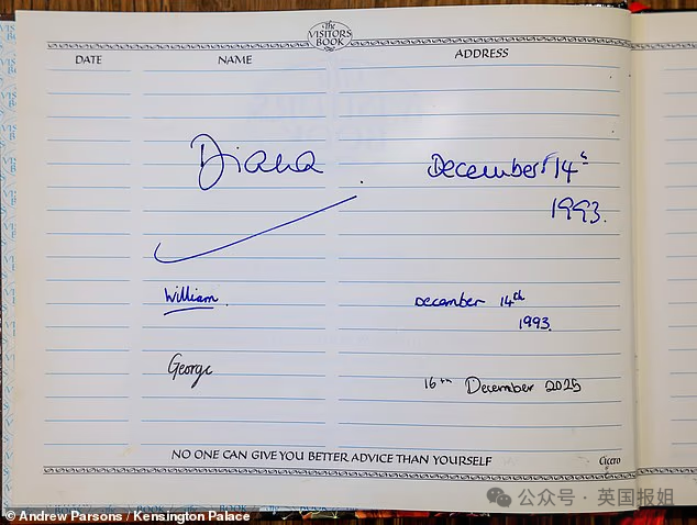 最妙的是,中心有一本访客签名书,工作人员找到了1993年戴安娜带着威廉第一次来时的签名和日期那一页。