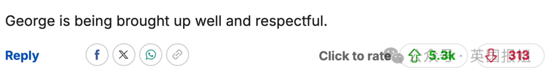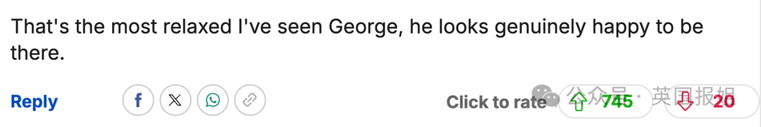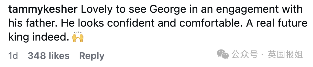 “乔治和爸爸的互动看着太可爱了。他看着自信又松弛,未来的国王养成中。”