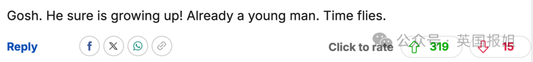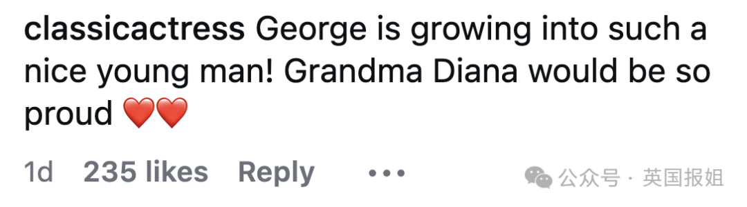 “乔治已经长成帅气少年了!奶奶戴安娜一定会很骄傲。”