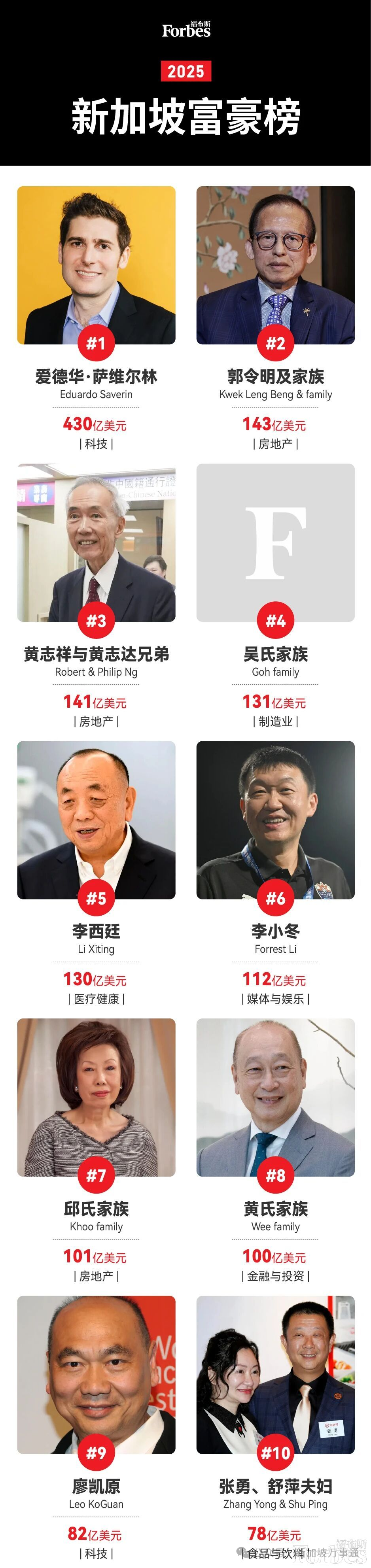 在结合今年9月发布的福布斯《2025新加坡50大富豪榜》来看,新加坡有一半的富豪祖籍都是中国…【亿万富豪达55位、总身家超$3353亿、祖籍中国占一半?!新加坡靠华人问鼎全球“富人天堂”~】