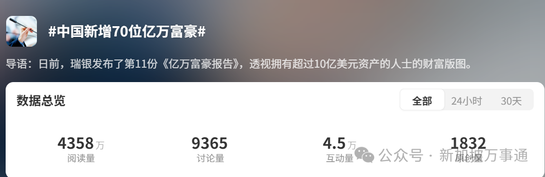今天中国新增70位亿万富豪的相关话题迅速冲上热搜!这么多富豪,多我一个能怎样啊!