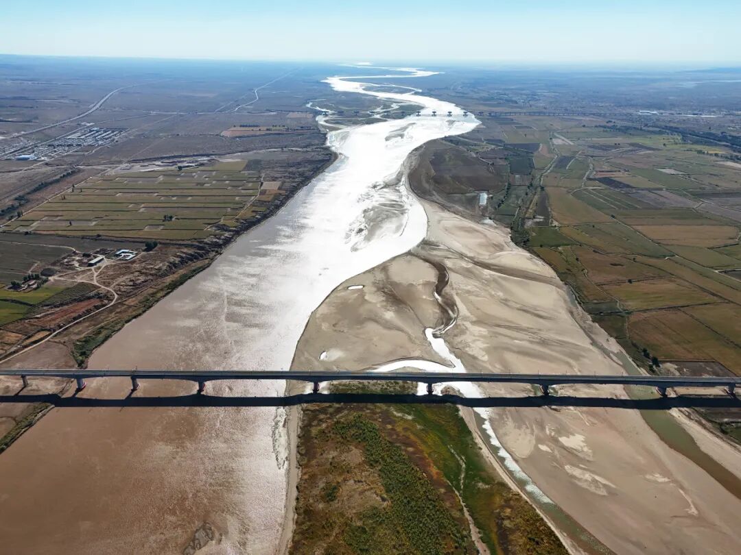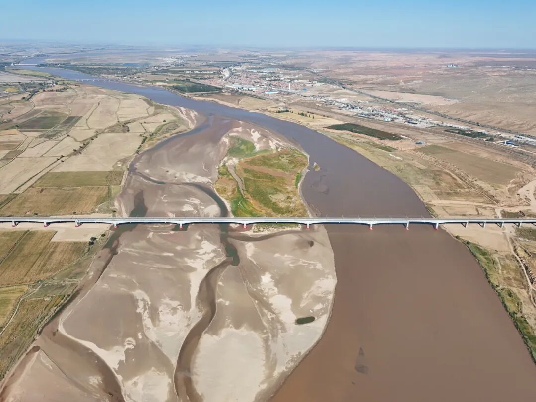 磴口黄河特大桥,位于巴彦淖尔市磴口县和鄂尔多斯市杭锦旗交界处,同时跨越黄河主河道、包兰铁路、G110国道和G6京藏高速,为长联大跨钢混混合连续梁桥。