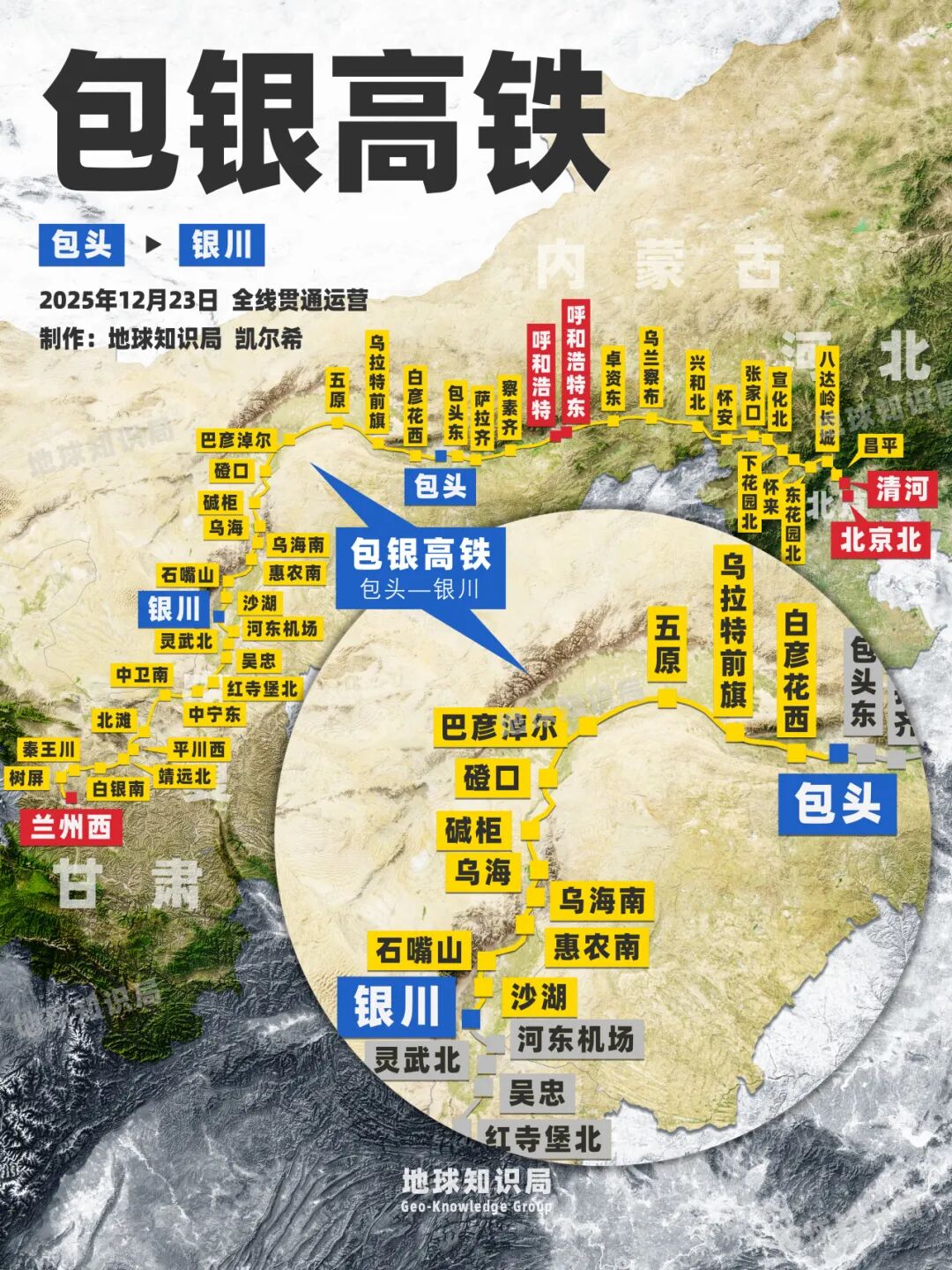 2025年12月23日10时8分,随着D4667次首发动车组列车缓缓从包头站驶出,开往银川站,标志着包银高铁包惠段(包头至银川高速铁路包头至惠农段)建成通车,包银高铁全线投入运营。
