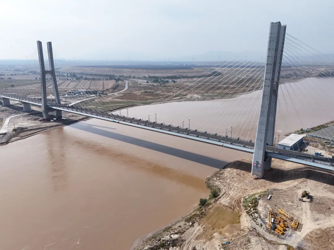 这是内蒙古第一座铁路斜拉桥,也是包银高铁全线桥塔最高、跨度最大的桥梁,有着包银高铁“黄河第一跨”之称。