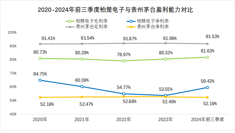 2025年前三季度,柏楚的营收是16.2亿,别看只排在行业第15名,但它将近80%的毛利率和9.04亿的净利润,排在行业第3。如果单看盈利能力的话,柏楚电子和茅台有得一拼,甚至在净利率方面比茅台还高。