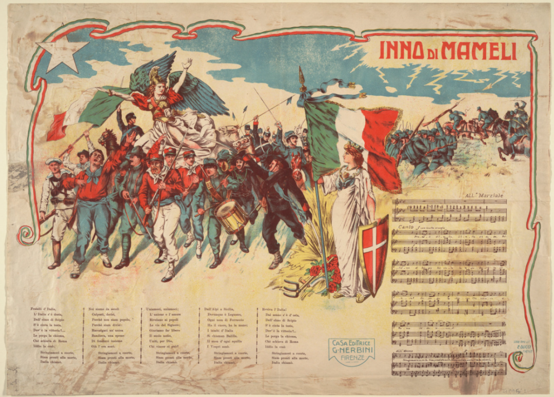 《意大利人之歌》诞生于1847年的热那亚,由于带有浓厚的共和色彩,萨伏依王朝更倾向于将《王室进行曲》作为王国国歌。1946年意大利共和国成立后,《意大利人之歌》被启用为国歌,不过当时仍属临时性质。直至2017年,意大利才通过立法,正式赋予其国歌地位。