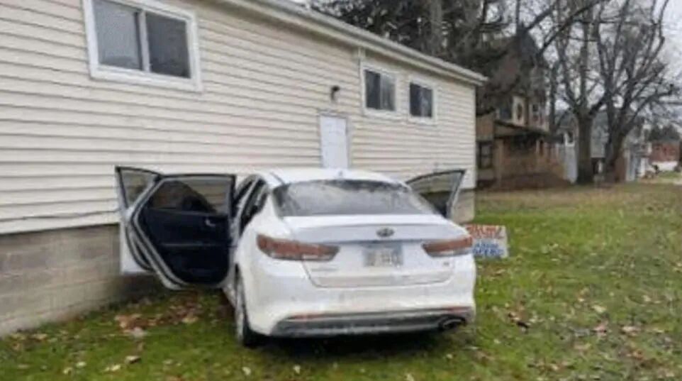 可能是之前没咋开过车,他的驾驶技术还不太熟练,因为想要左转,猛打方向盘,结果汽车失控打滑,撞进了一栋房子。