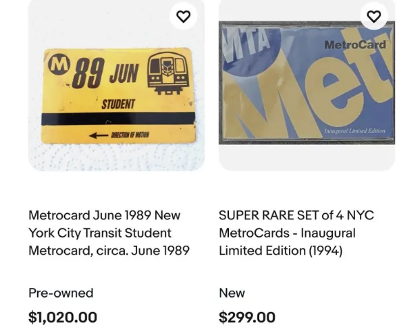 2022年,MTA曾为纪念嘻哈诞生50周年而推出系列限量卡片;其中,以纽约著名已故说唱歌手「声名狼藉先生」(The Notorious B.I.G.)为卡面的MetroCard,如今在Ebay上开价200元至400元不等。而发布于1990年初的首版蓝色地铁卡售价亦不菲;1989年推出的测试版学生卡更喊价近千元。印有帝国大厦、自由女神等纽约地标的限量版,也被炒至百元以上。