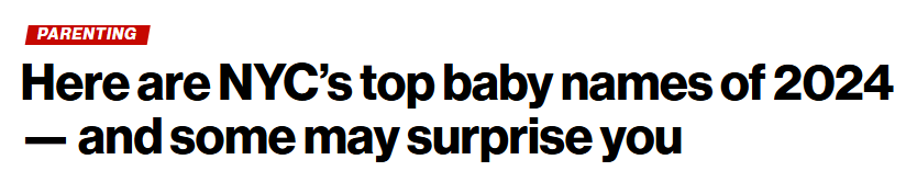 纽约市卫生局近日公布了2024年五大行政区最受欢迎的婴儿名字榜单。这份榜单中的前十名或许会让不少人感到意外。来源:纽约邮报报道截图