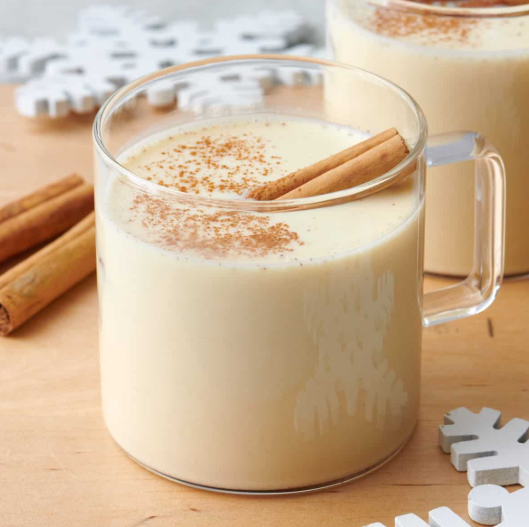 “蛋奶酒”是一种起源于英国、在欧美地区尤其流行于圣诞和新年季的传统甜味奶蛋饮品,主要由牛奶、鲜奶油、鸡蛋、糖和肉桂、肉豆蔻等香料制成,通常可加入朗姆酒或白兰地调成鸡尾酒,口感浓郁香甜,带有节日气氛,常被视为冬日暖身或节日仪式感的饮品。