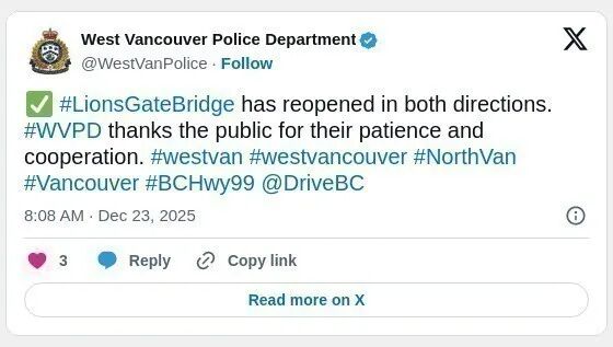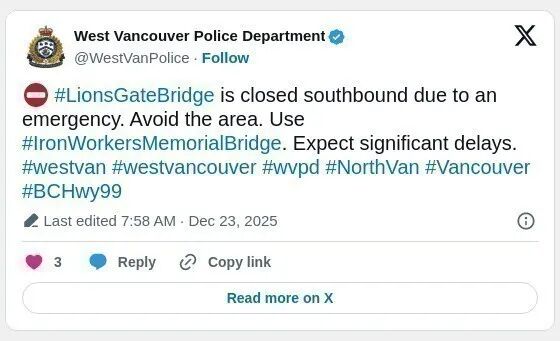 大温出现堵车并不罕见,但像今天这样同时出现各种问题的情况并不常见。一大早狮门桥全关