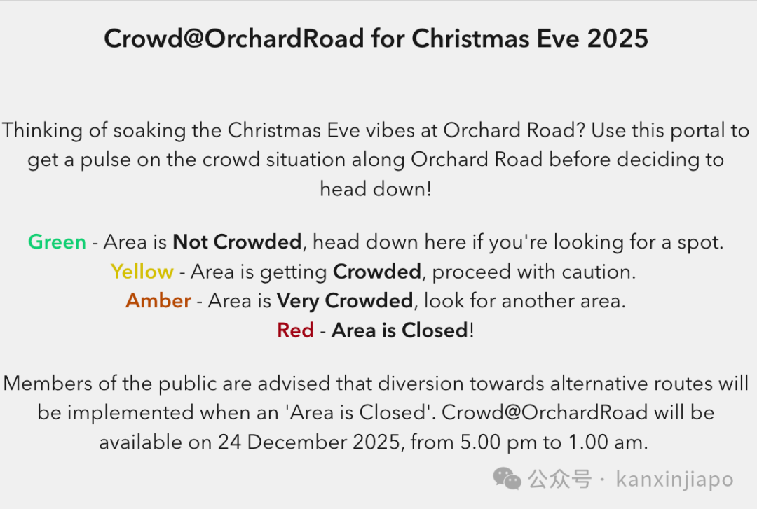 (12月24日)是平安夜,预计乌节路一带将迎来大量人流。警方已发布文告表示将加强安保,包括人流管控和交通安排。图源:Crowd@OrchardRoad网站