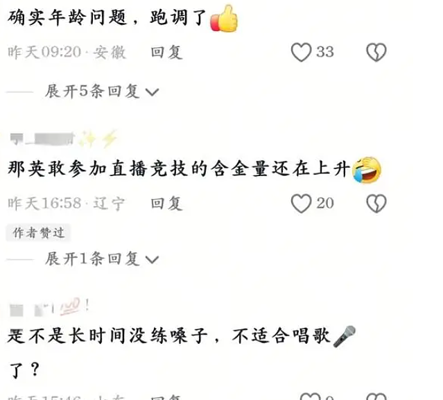不少人指出,田震之前几次在综艺上的演唱已经出现了走音、气息不稳的现象,对她能否胜任演唱会表示不确定。