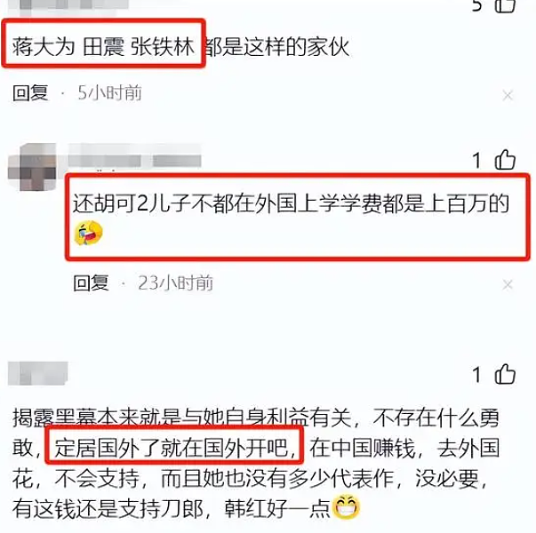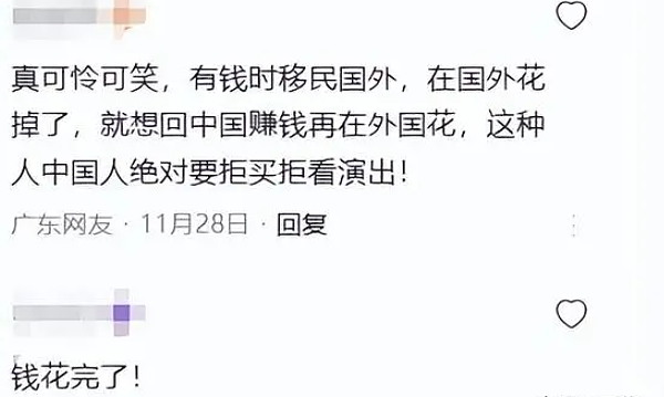 认为她国内敛财国外花,现在无非是经济遇到了困难,回国捞钱而已。
