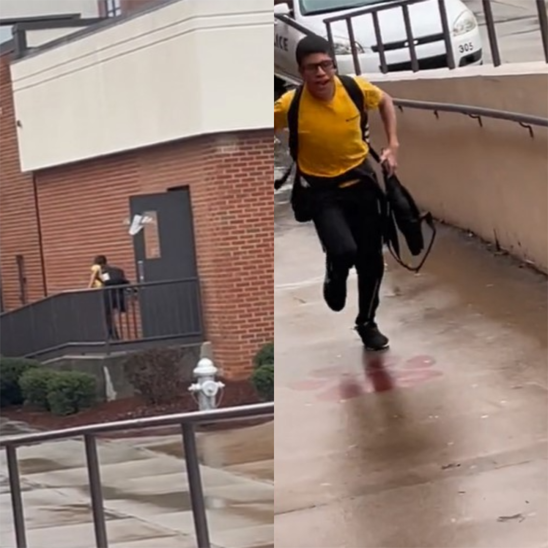 某一天,不知道是哪位同学突发奇想,将John Bravo努力奔跑去上课的视频,发布到了网上。