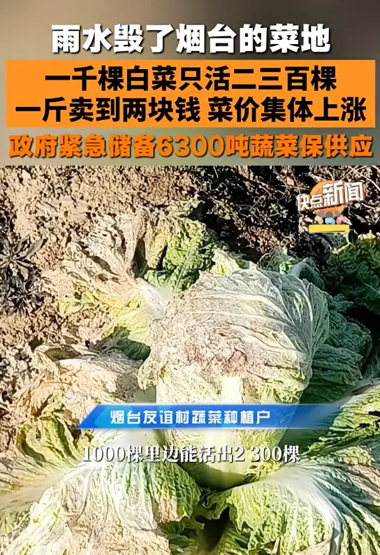 今年秋季,全国大白菜种植最重要的产地河北中南部、山东西南部受淹减产,到现在存量已经不足,其他产地如云南、湖北等则因为体量小而无法填补供应缺口,供不应求就造成了如今大白菜价格暴涨的局面。