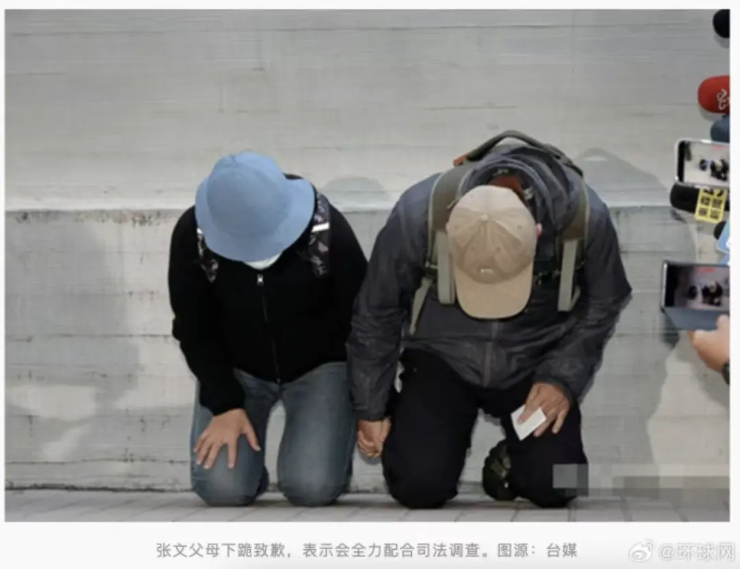 据环球网援引“中央社”、联合新闻网等台媒12月23日报道,台湾男子张文19日在台北市随机攻击造成严重人员伤亡,张文后坠楼身亡,检警23日在台北进行遗体解剖。张父和张母首次受访,连说4次对不起,并下跪向社会大众及受害者家属致歉。