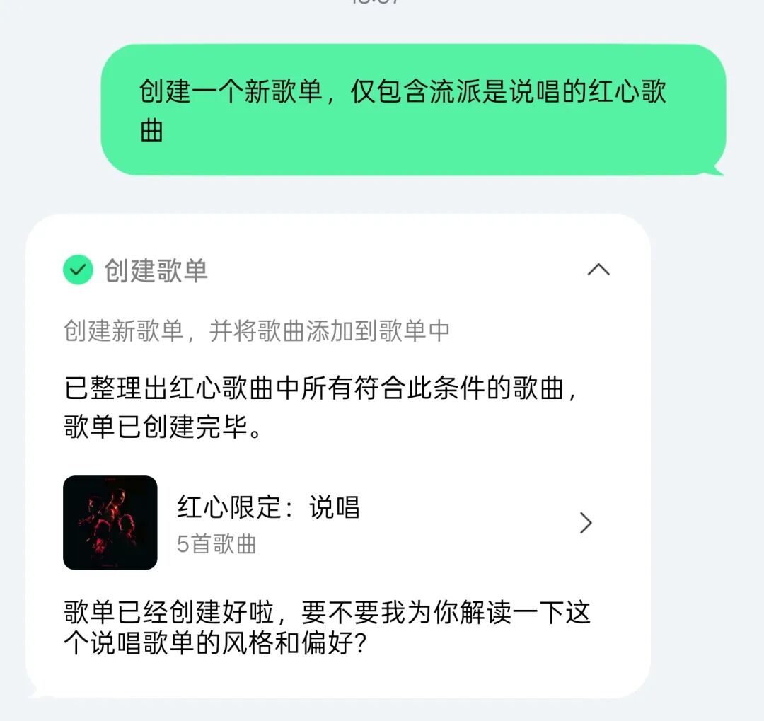 我让它帮我创建一个歌单,只包含我红心收藏过的说唱曲目。