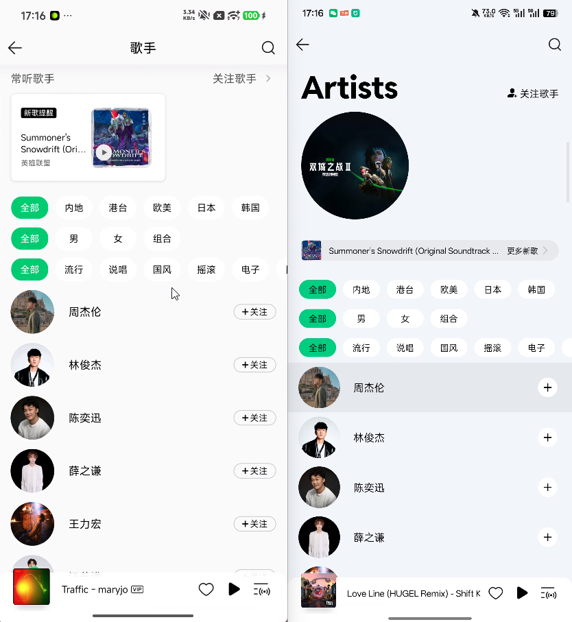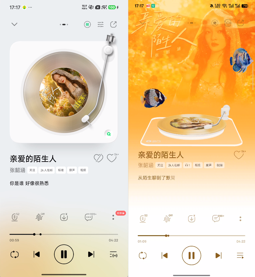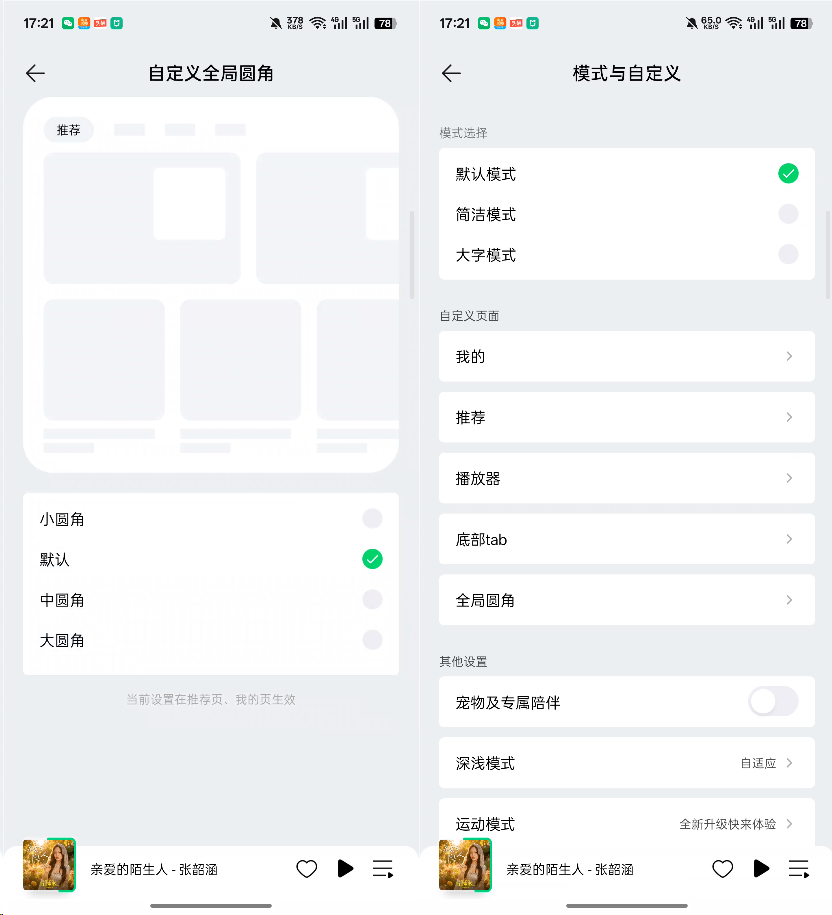 机哥目测改动不大,只有顶部卡片和歌曲专辑的圆角有微调。