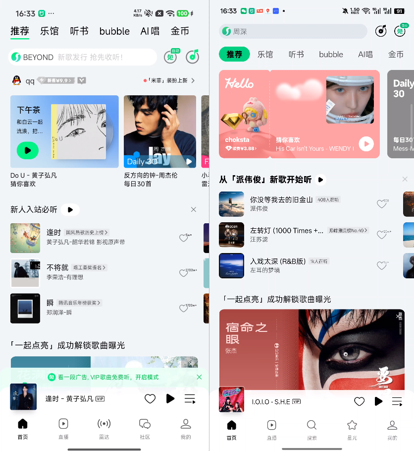 作为非氪金玩家,启动QQ音乐后,迎接我的是: