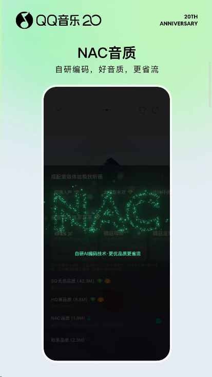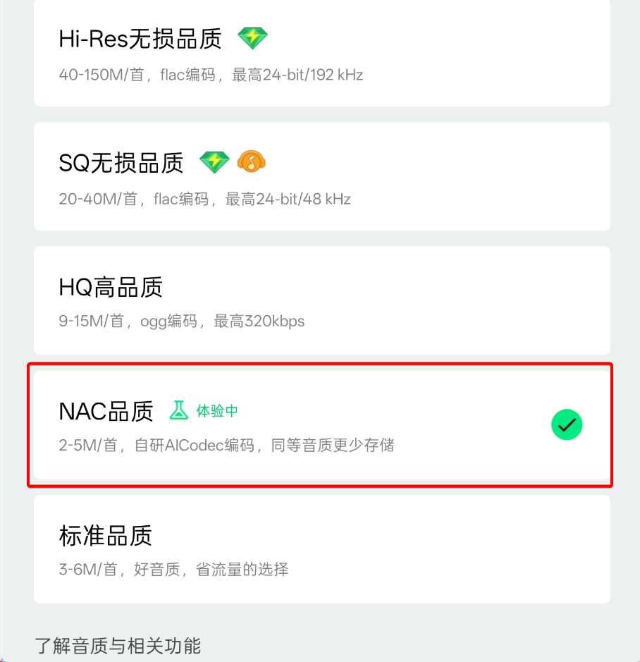 按照官方说法,「NAC音质」可以保证歌曲音质的前提下,节省更多流量。