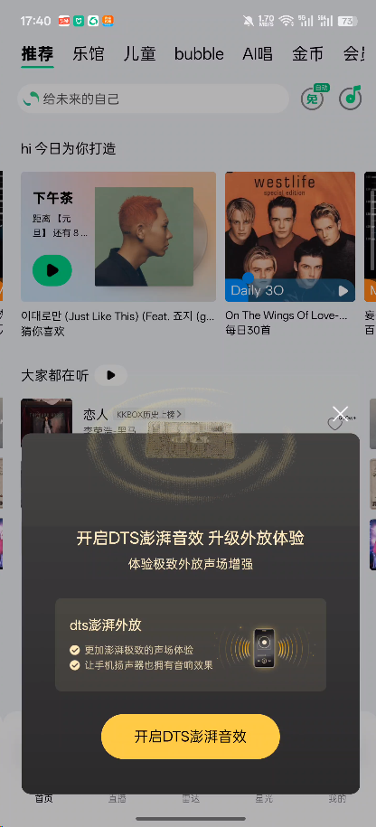 “开启新的DTS澎湃音效,提升外放体验吧。”